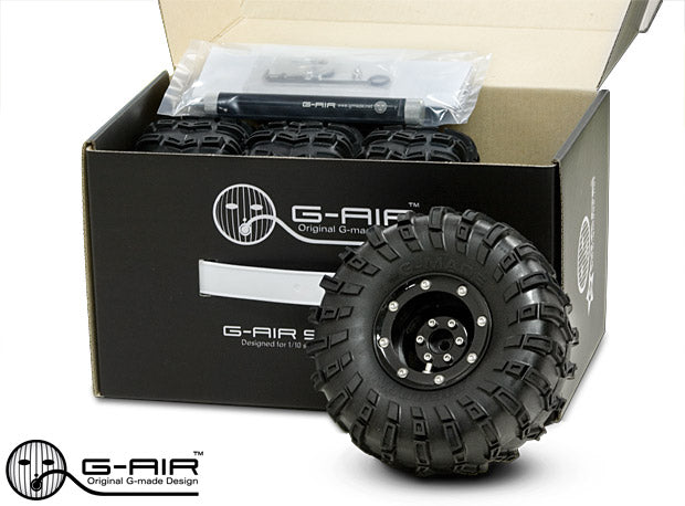 This innovative tire and wheel system for 1/10 trucks and crawlers allow the user to easily adjust air pressure for optimum performance over the most difficult terrain. The heavy-duty beadlock wheels add style to any rig, and the convenient air pump (included) allows for fast pressure changes. Beautifully packaged in a gift box with all parts and pump.