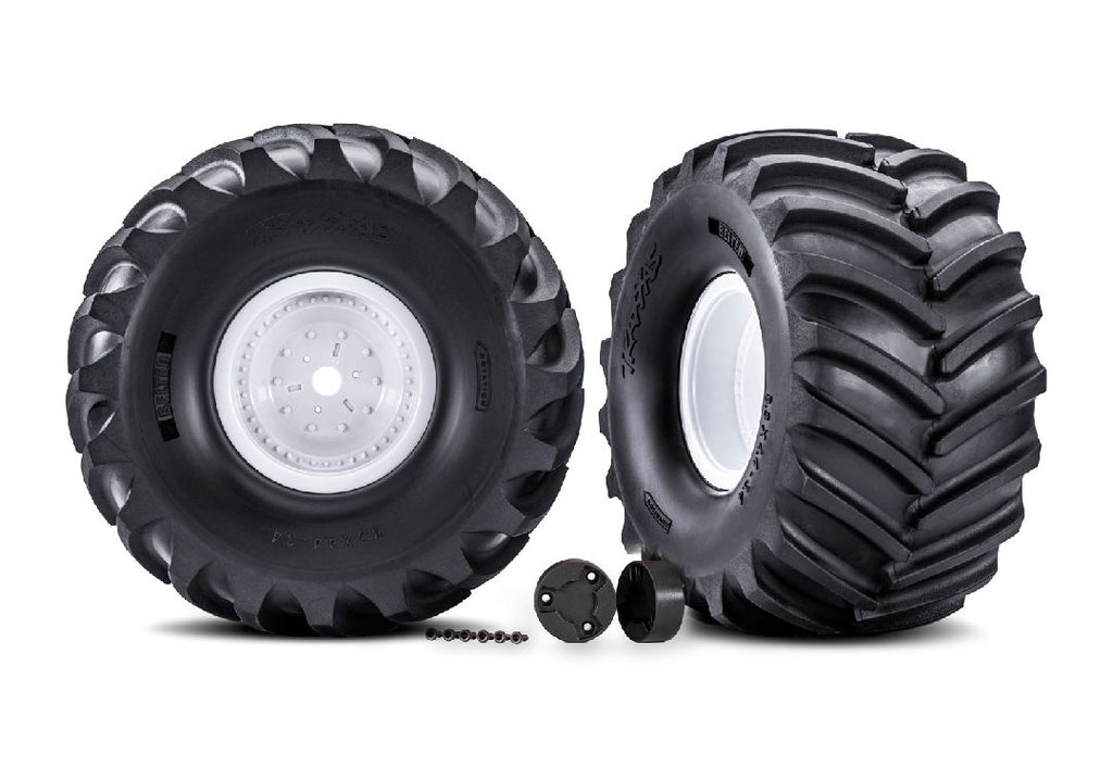 Traxxas Tires & wheels, assembled, glued (white wheels, center caps, Terra Groove dual profile tires) (left & right)