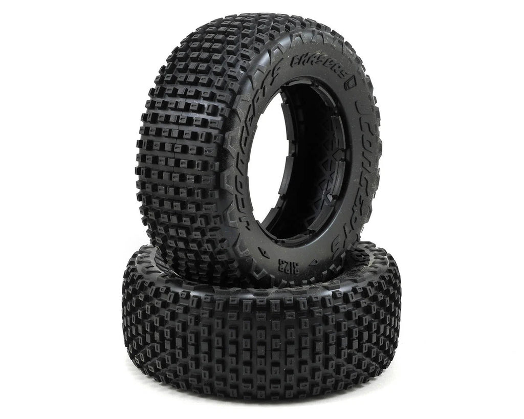 The outer sidewall has added tread at the top which provides extra reinforcement for those tough outdoor conditions. The outer V-lug also provides some paddle traction in loose sand or muddy conditions giving the Chasers ultimate versatility. The inner carcass has extensive ribbing in a hatch pattern increasing the durability in the center of the carcass while also limiting high-speed tire expansion. The inner sidewalls have been reinforced with vertical ribbing arranged in a circular pattern which gives more support during hard cornering.