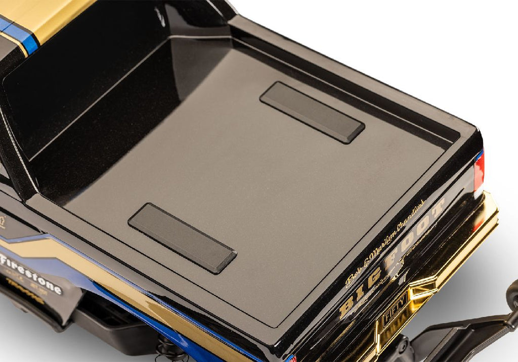 Cela fait 50 ans que le BIGFOOT n° 1 de Bob Chandler a rugi pour la première fois, créant le tout premier « monster truck ». Depuis, des millions de fans ont regardé avec émerveillement le BIGFOOT écraser des voitures et s'envoler dans les airs dans les stades du pays. Traxxas célèbre l'héritage du BIGFOOT avec ce BIGFOOT 4X4 50e anniversaire, doté d'une peinture unique et d'accessoires dorés.