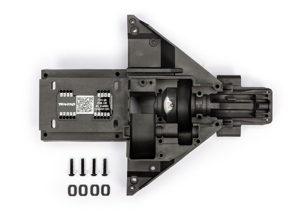 Cloison Traxxas, arrière (inférieure) / rondelles de support de moteur (acier) (4) / 4x18mm BCS (4)