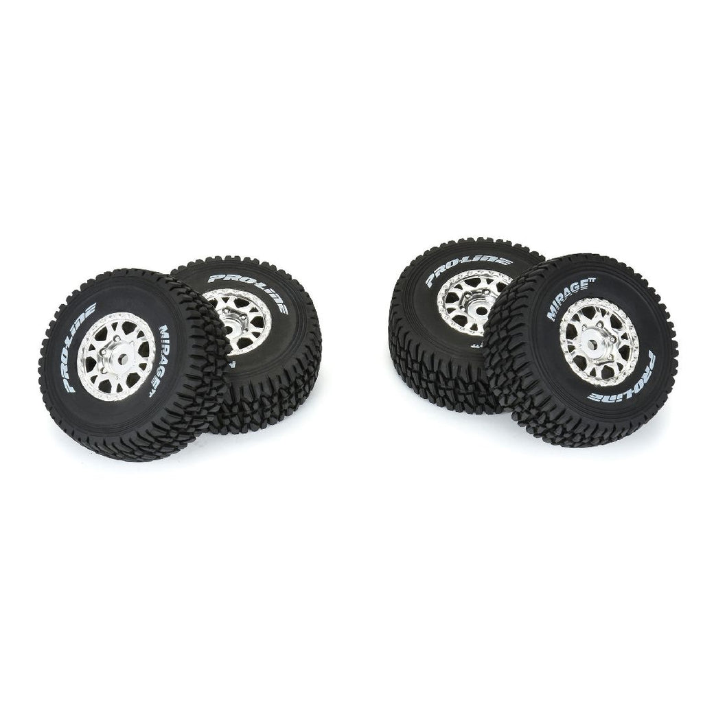 Pneus Pro-Line Mirage TT F/R montés 12 mm Hex Satin Silver Impulse (4) pour Arrma Mojave Grom